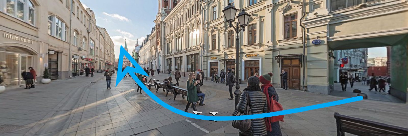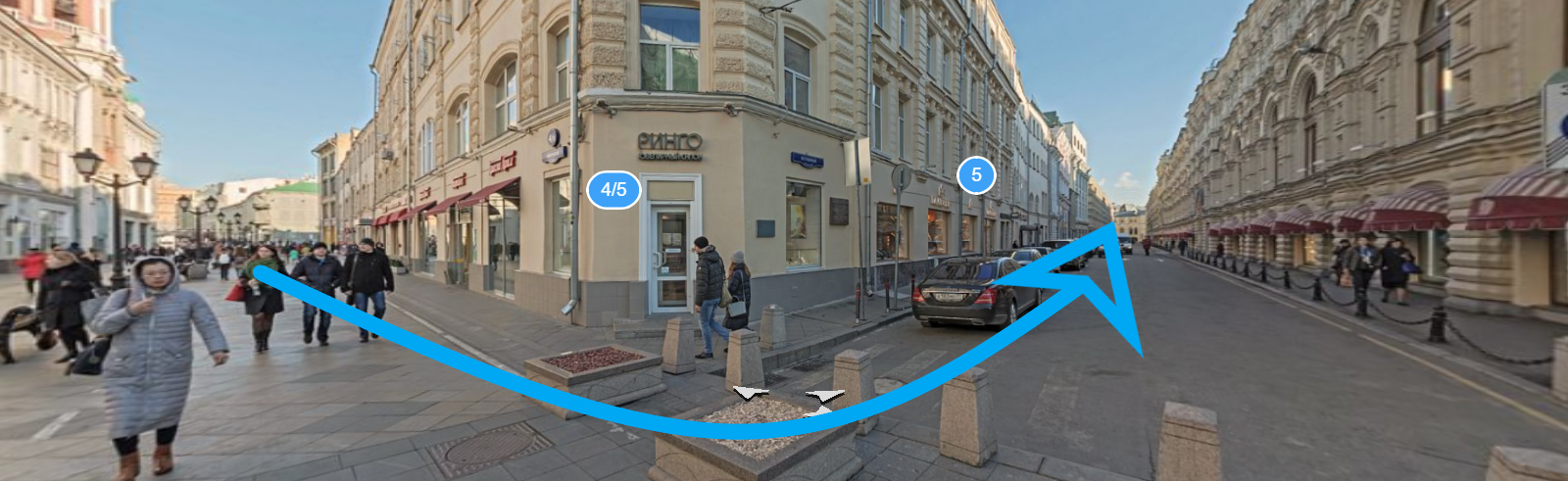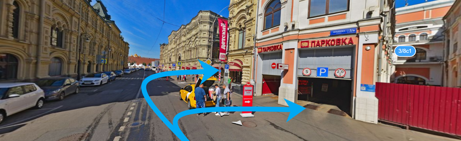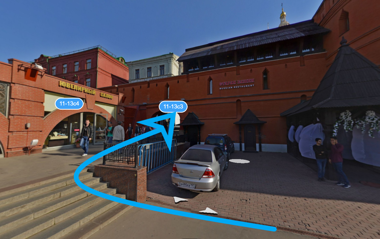 Двигаемся по улице Новая Площадь в сторону набережной, поворачиваем на ул.Ильинка, едем прямо до Детского ГУМа. Ветошный переулок находится между зданиями ГУМа и Детского ГУМа. Можно воспользоваться крытым паркингом или уличной парковкой на Ветошном переулке. Справа, на Ветошном переулке, находится Никольский Пассаж.